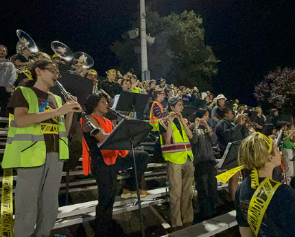 The Pep Band plays at home football games to cheer on our football team.